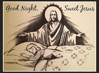 “Good Night, Sweet Jesus, God bless Mommy and Daddy, my sisters and brothers (each one had to be named individually), my Memeres and Peperes, all my aunts and uncles and cousins, all my friends and relatives. (Add here any special petitions). And keep us well and happy together forever. Amen. “