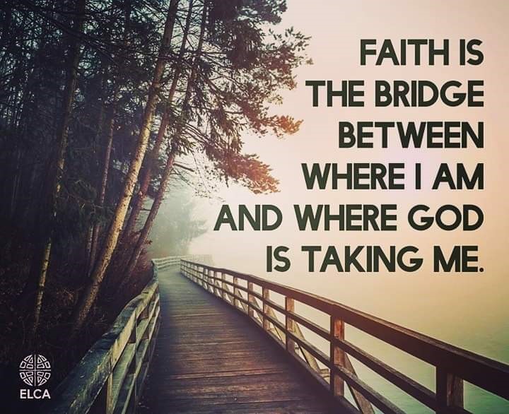 Our only hope is the unconditional love of the Almighty God. He is not only at the end of our journey, but he with us each step of the way. Trust him. Count on him. Faith is the bridge between where we are and where God is taking us. It’s a strong and sturdy bridge. When we trust God, we can continue, one step at a time. Keep the faith, my friends.