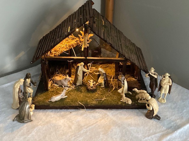 The Christmas manger was always a big part of our celebration growing up. We had a set of colorful papier-mâché figurines that showed the wear and tear of nine children setting up and taking down the nativity scene over many years. By the time I was involved in setting up the manger as the 8th of nine children, some of the figures had lost a hand or two and bare spots on halos and robes had to be politely ignored.