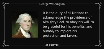 I’d like to share a quote attributed to George Washington. “It is the duty of all Nations to acknowledge the providence of Almighty God, to obey his will, to be grateful for his benefits, and humbly to implore his protection and favors.” Yes, they are good words to live by for any generation.