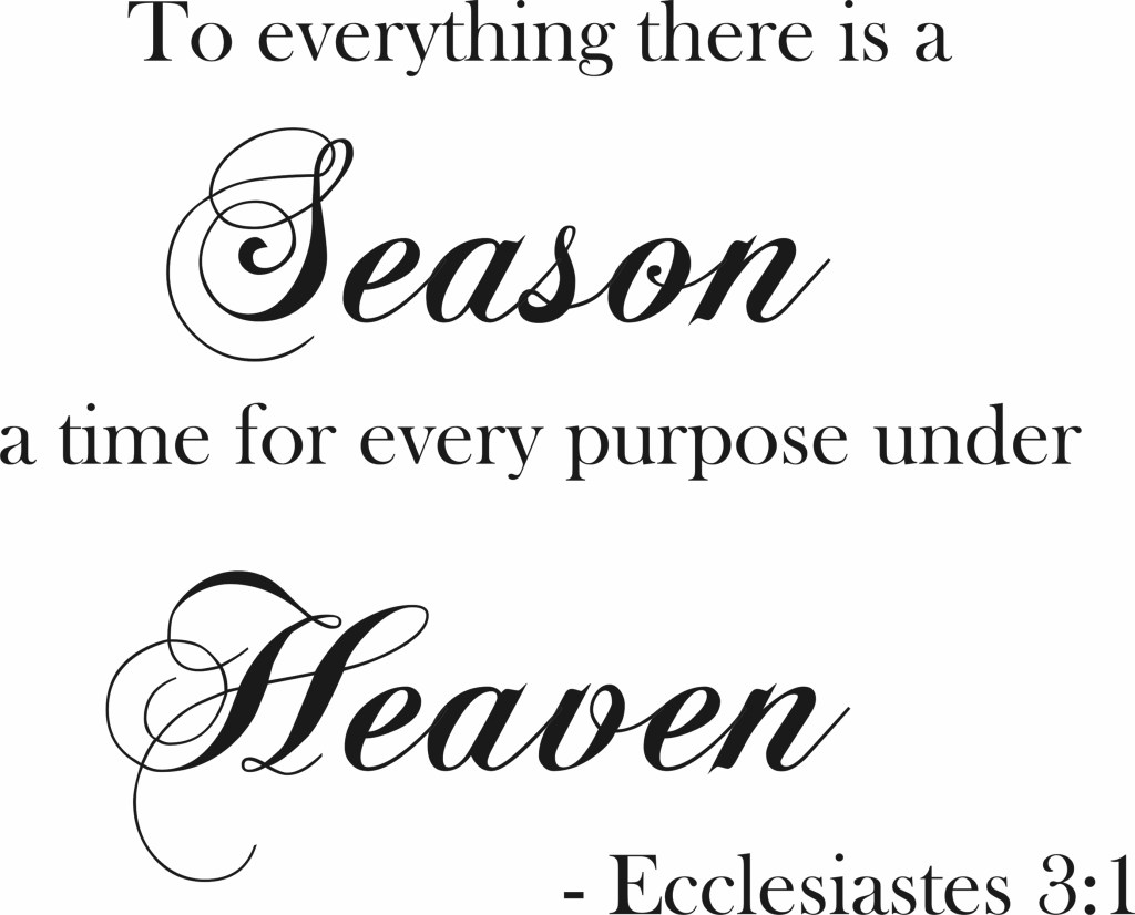 The Bible tells us in Ecclesiastes 3:1, “To everything there is a season, A time for every purpose under heaven.” It also tells us in Ecclesiastes 3:11, “He hath made everything beautiful in his time.”