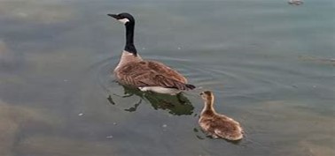 Last week, while planting the small garden area off my deck, I looked up and spotted about 40+ Canadian Geese goslings! They are like giants compared to the ducklings. I have never seen them here on my side of the lake at this time of the year. Fall, yes, lots of the adults, but not the babies. These young ones formed a virtual parade down the edge of the lake pecking at the water weeds. They also ran away from me as I approached the water with my camera.