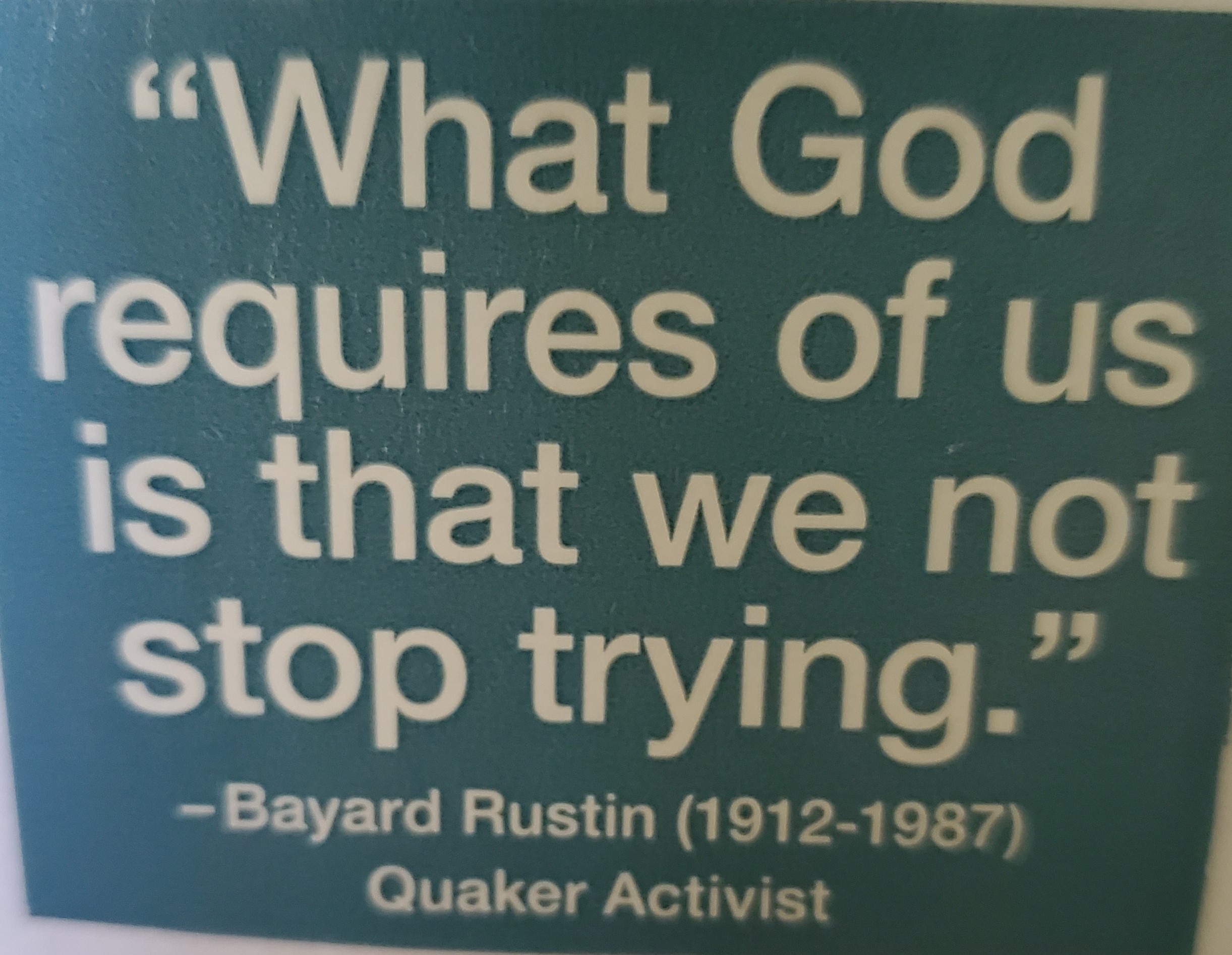 Rustin worked with Dr. Martin Luther King, Jr. Because he was a Quaker, he convinced Dr. King that non-violent protest should be an important part of the Civil Rights movement. But because Rustin was gay, he stayed in the background of the movement. We can imagine what this quote meant to him.