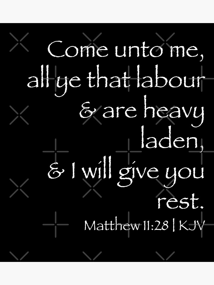 “Come unto me, all ye that labor and are heavy laden, and I will give you rest. Take my yoke upon you and learn of me; for I am meek and lowly in heart: and ye shall find rest unto your souls. For my yoke is easy, and my burden is light.” Matthew 11:28-30, ASV