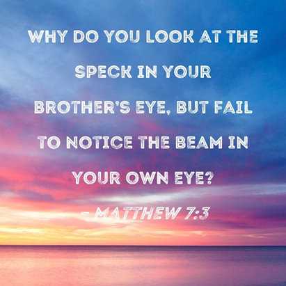 Well then, whatever was Matthew talking about in chapter 7:3-4? “Why do you see the speck that is in your brother’s eye, but do not notice the log that is in your own eye? Or how can you say to your brother, ‘Let me take the speck out of your eye,’ when there is a log in your own eye?”