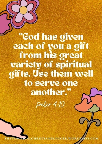 “God has given each of you a gift from his great variety of spiritual gifts. Use them well to serve one another.” Peter 4:10